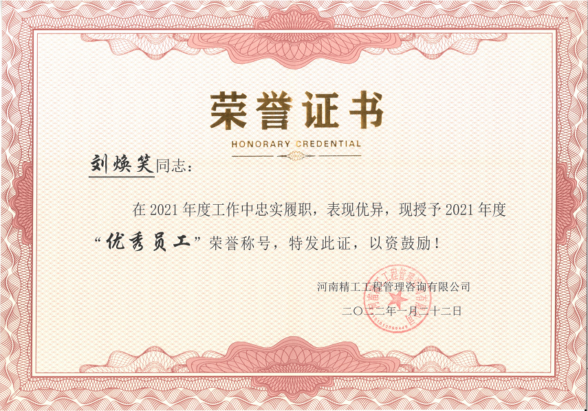 劉煥笑于2020年9月15日到精工入職,在發(fā)覺自身對監(jiān)理行業(yè)的短板后,她迅速補充自己的知識庫,從企業(yè)宣傳手冊到建設(shè)監(jiān)理期刊以盡可能全面了解精工以及監(jiān)理行業(yè)的知識,并加以發(fā)揮自身人力資源的專業(yè),做好精工的“打頭陣”。