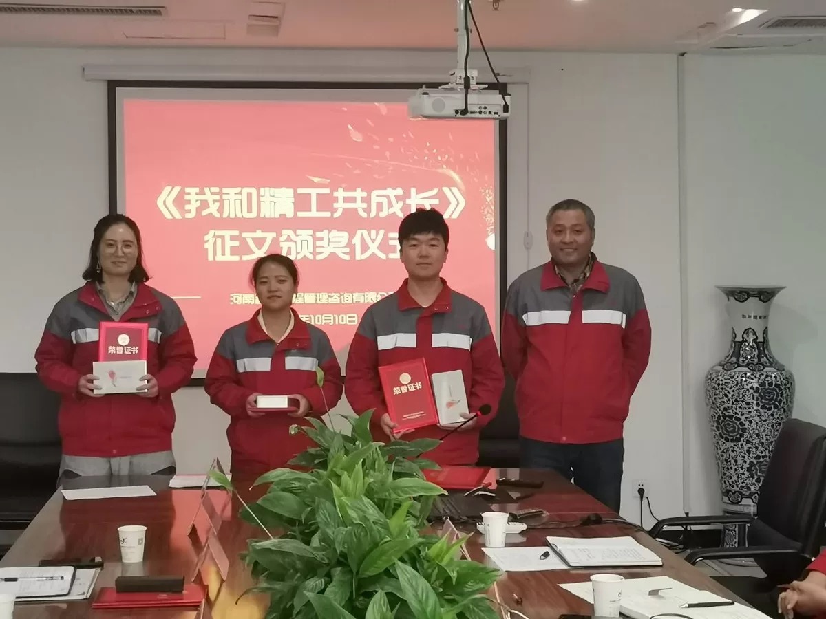 為了更好的推動(dòng)河南精工工程管理咨詢(xún)有限公司企業(yè)文化建設(shè)進(jìn)程,挖掘精工文化精髓,許占立總經(jīng)理提出了“文化強(qiáng)企”的全新管理理念,于2020年9月14日至9月20日向參加2020年中高層及基層骨干代表企業(yè)文化座談會(huì)的全體人員,展開(kāi)了以《我和精工共成長(zhǎng)》為主題企業(yè)文化征文創(chuàng)作和評(píng)選活動(dòng)。