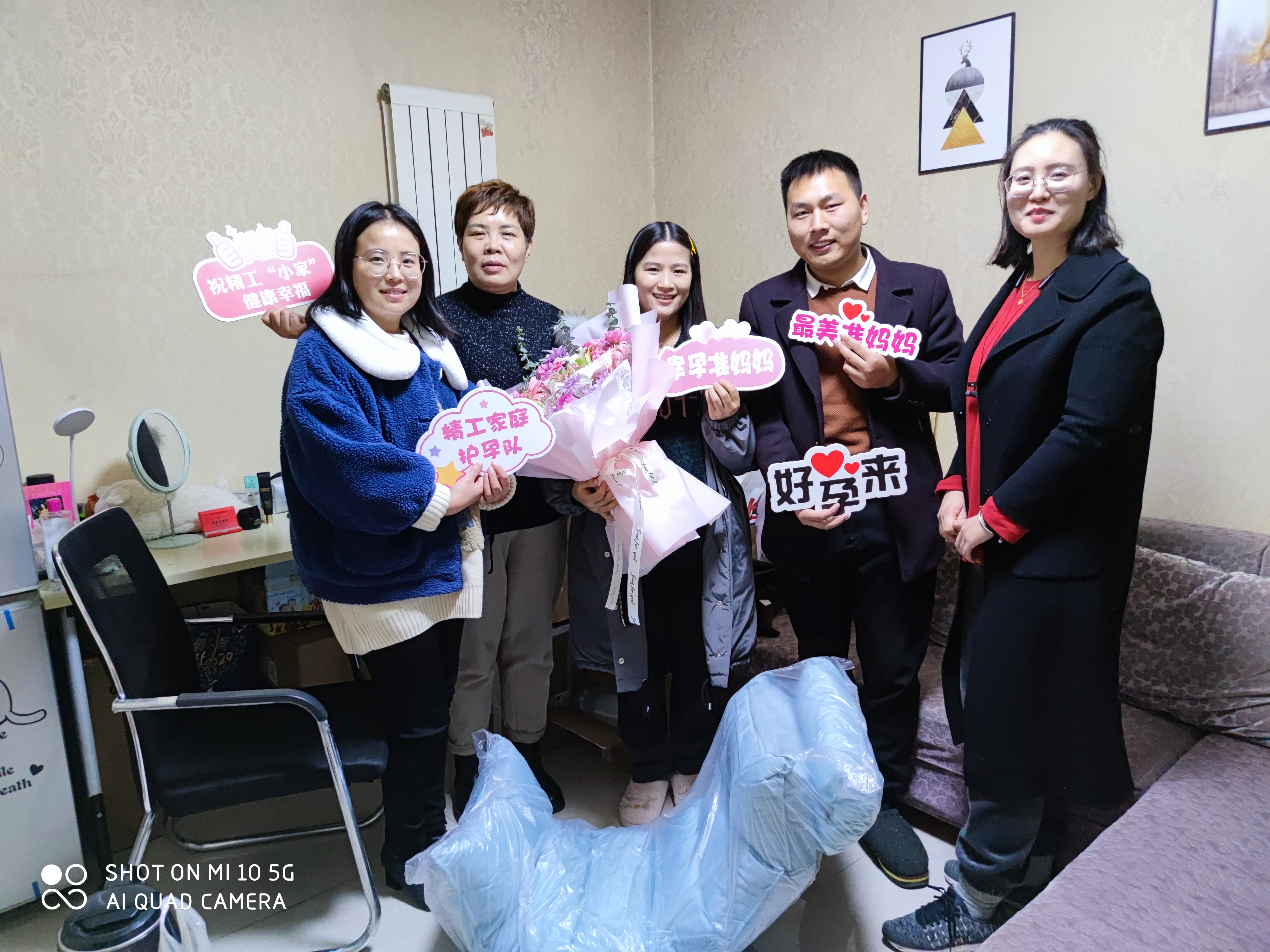 2020年11月28日,由河南精工工程管理咨詢有限公司工會主席張瑋、人力資源經理劉煥笑、綜合部經理石素敏、邱瑞納一行組成“精工家庭護孕隊”對精工“小家”中的幸“孕”準媽媽入戶慰問,親切交流噓寒問暖,了解她們的工作、生活情況,關心目前的身體狀況。其中,工會主席張瑋還以自身孕期經驗及孕期知識為她們講解了在孕期的注意事項和孕產、胎教、育兒等方面相關知識。